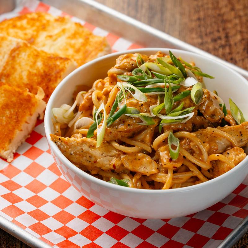 Spaghetti topped with a Cajun sauce comprised of Cajun spices, garlic, cream, parmesan, chives, and your choice of chicken or shrimp. A little taste of the bayou!