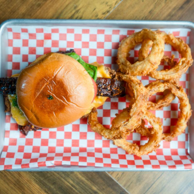 Japanese BBQ marinated chicken, pineapple, red onion, candied bacon, and white American cheese stuffed between Hawaiian sweet buns. A staff favorite.
